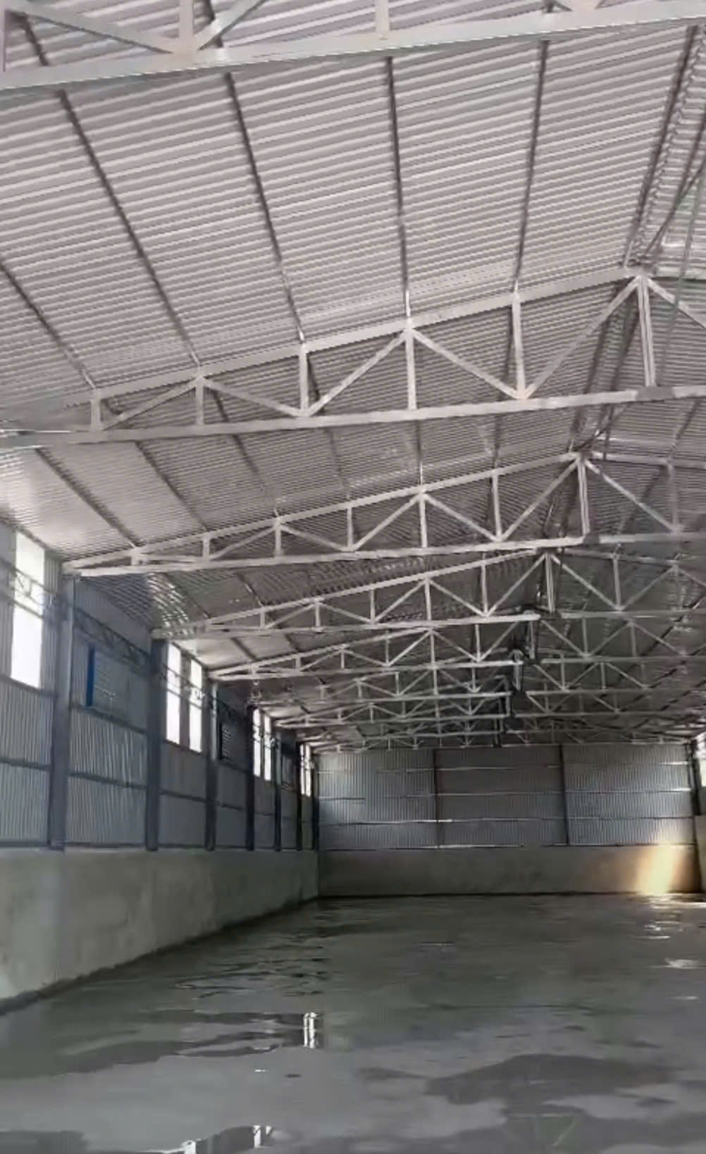 - Diện tích nhà xưởng: 720 m² (ngang 16m × dài 45m), xây mới 100%, có sân trước dài 35m thuận tiện xe tải ra vào.